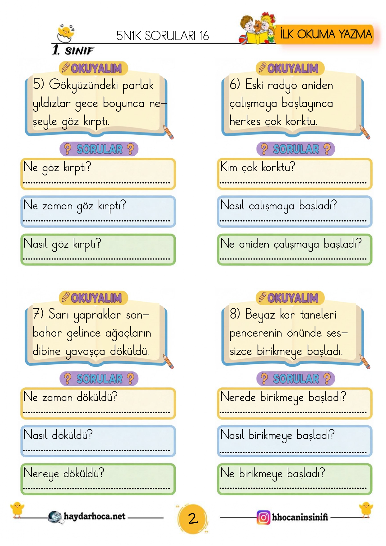 1. Sınıf Haftalık 5N1K Soruları 4 (5 Adet) 22 Şubat 202622 Şubat 2026Şurada Paylaşıldı: 1. Sınıf, 5N 1K Çalışmaları, Türkçe1. Sınıf 5N1K soruları 16İndir1. Sınıf 5N1K soruları 17İndir1. Sınıf 5N1K soruları 18İndir1. Sınıf 5N1K soruları 19İndir1. Sınıf 5N1K soruları 20İndir
