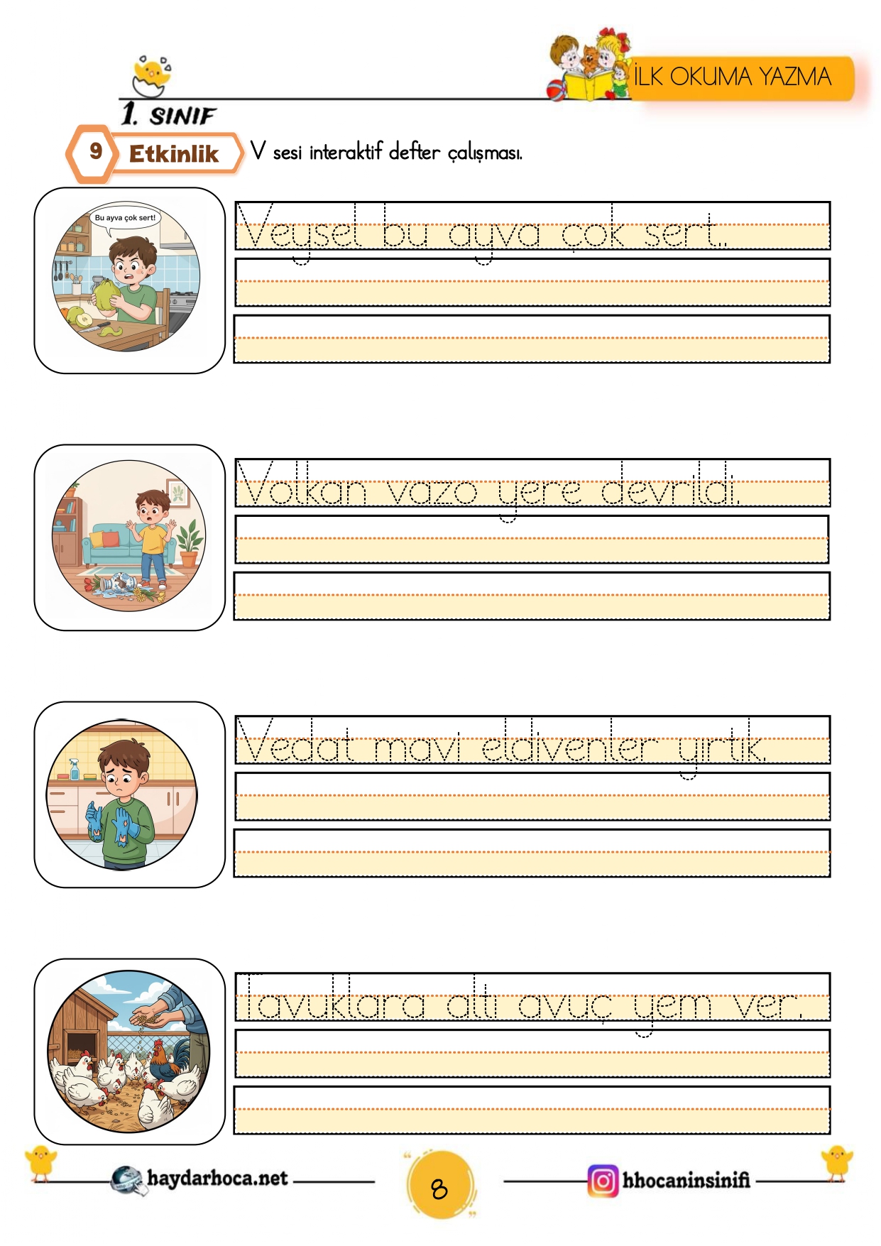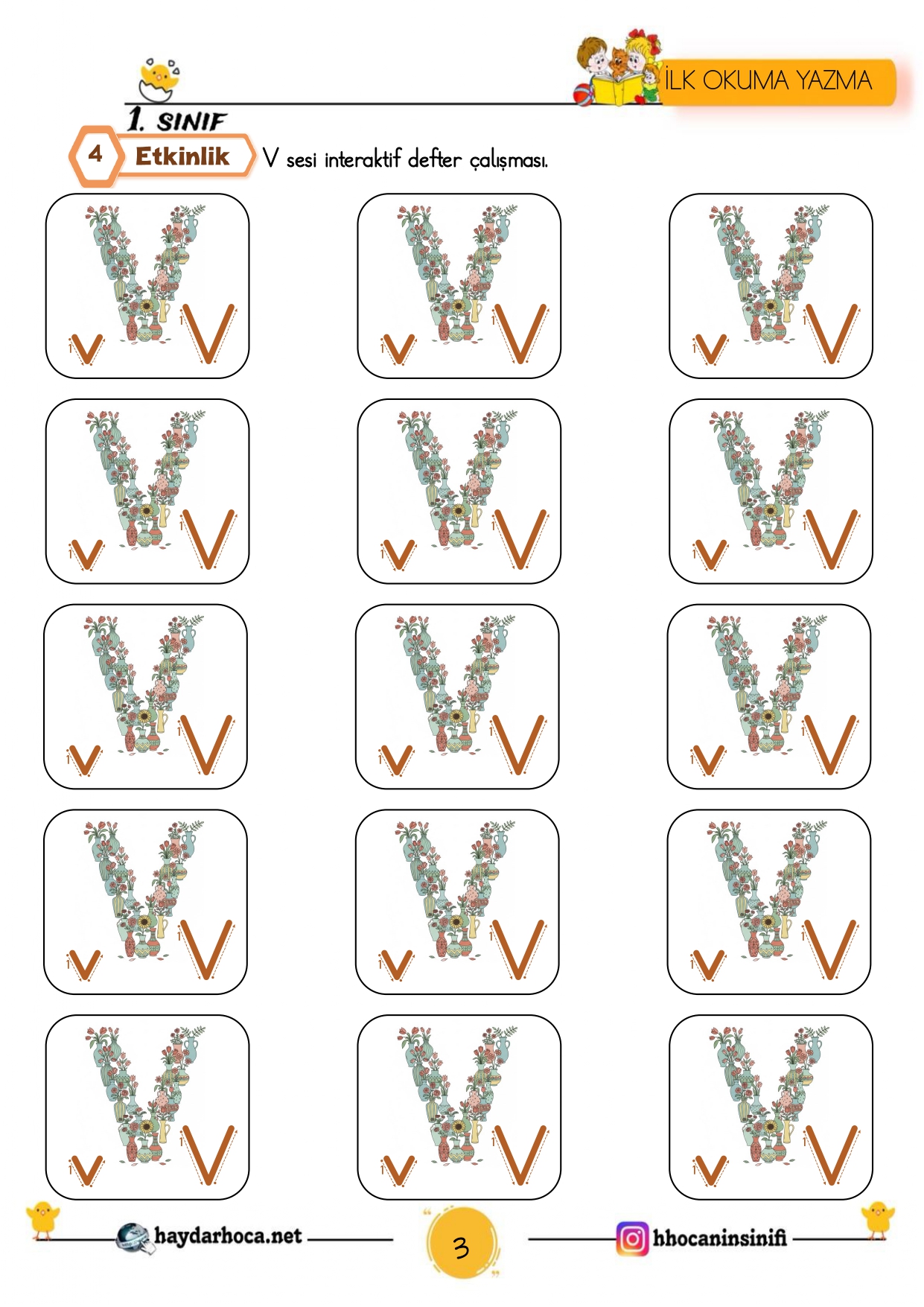V-v sesi hissetmeV-v sesi ayırt etmeV-v sesi defter çalışmamv sesi yazmaV sesi yazmaV sesi hece çalışmalarıV sesi kelimelerV-v sesi cümlelerV sesi cümle tamamlamaV sesi cümlelerV sesi dikte sayfasıV sesi görsel dikteV sesi kelime tablosuV sesi okuma metinleriV sesi karesel okumaV sesi metin yazmaV sesi defter çalışması
