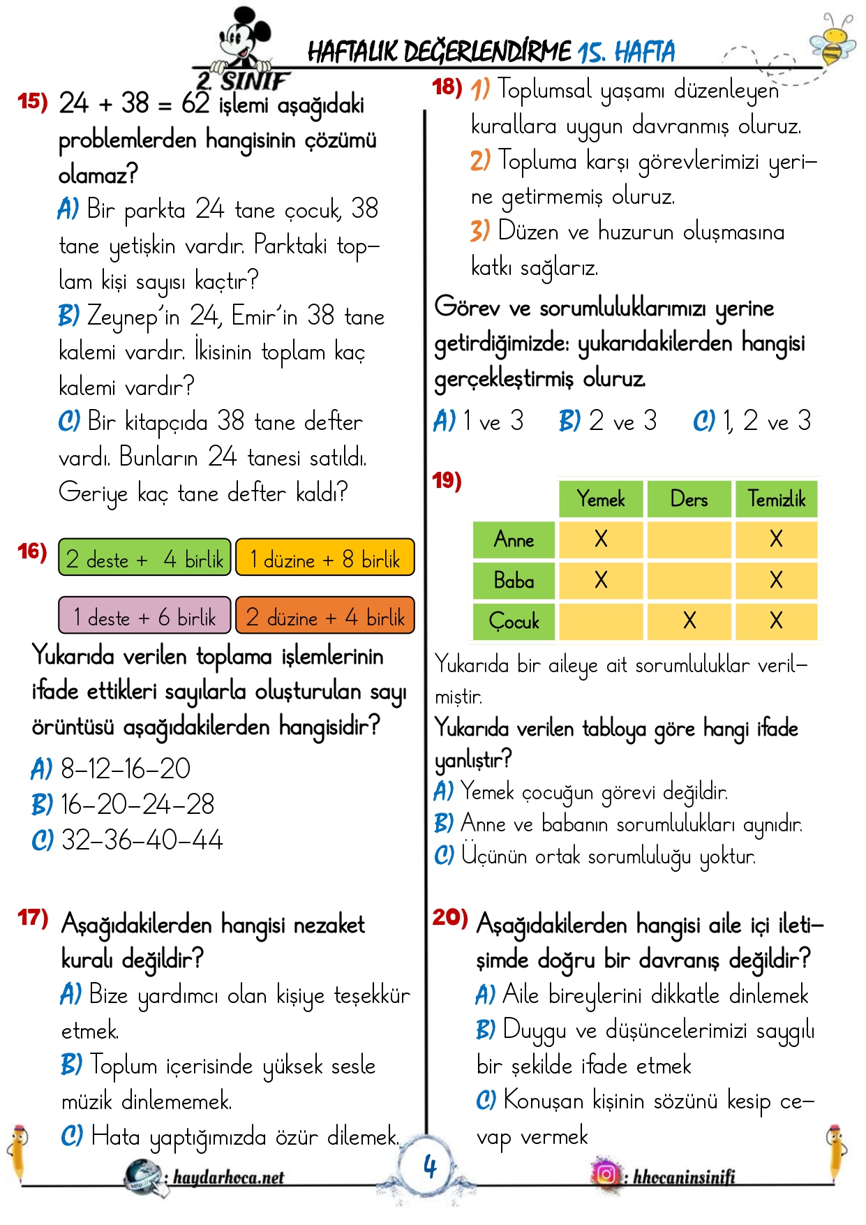 2. Sınıf 15. Hafta Haftalık Değerlendirme 24 Aralık 202525 Aralık 2025Şurada Paylaşıldı: 2. Sınıf, Sınavlar2. Sınıf 15. Haftalık Değerlendirmeİndir2. Sınıf 15. Haftalık Değerlendirme Cevapları ve optik formİndir