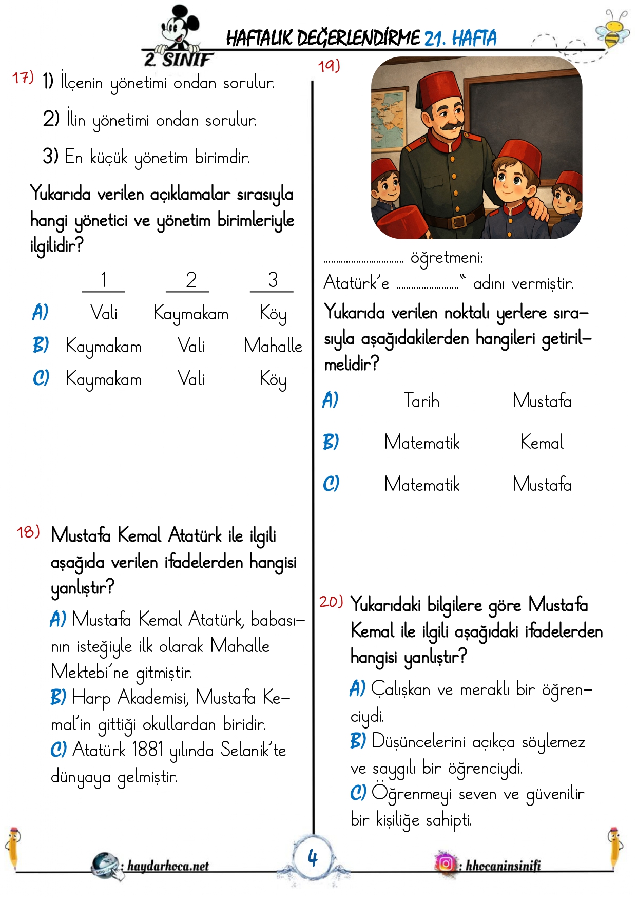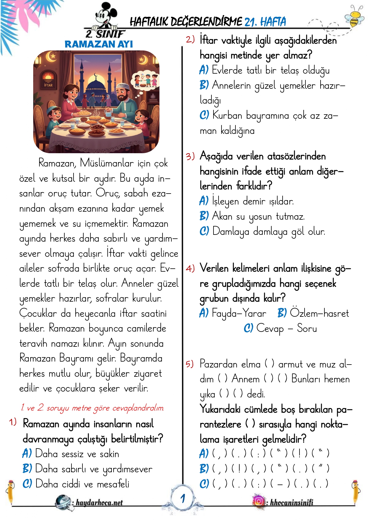 2. Sınıf 21. Hafta Haftalık Değerlendirme 18 Şubat 202621 Şubat 2026Şurada Paylaşıldı: 2. Sınıf, 2. Sınıf, Sınavlar2. Sınıf 21. Haftalık Değerlendirmeİndir2. Sınıf 21. Haftalık Değerlendirme Cevapları ve optik formİndir
