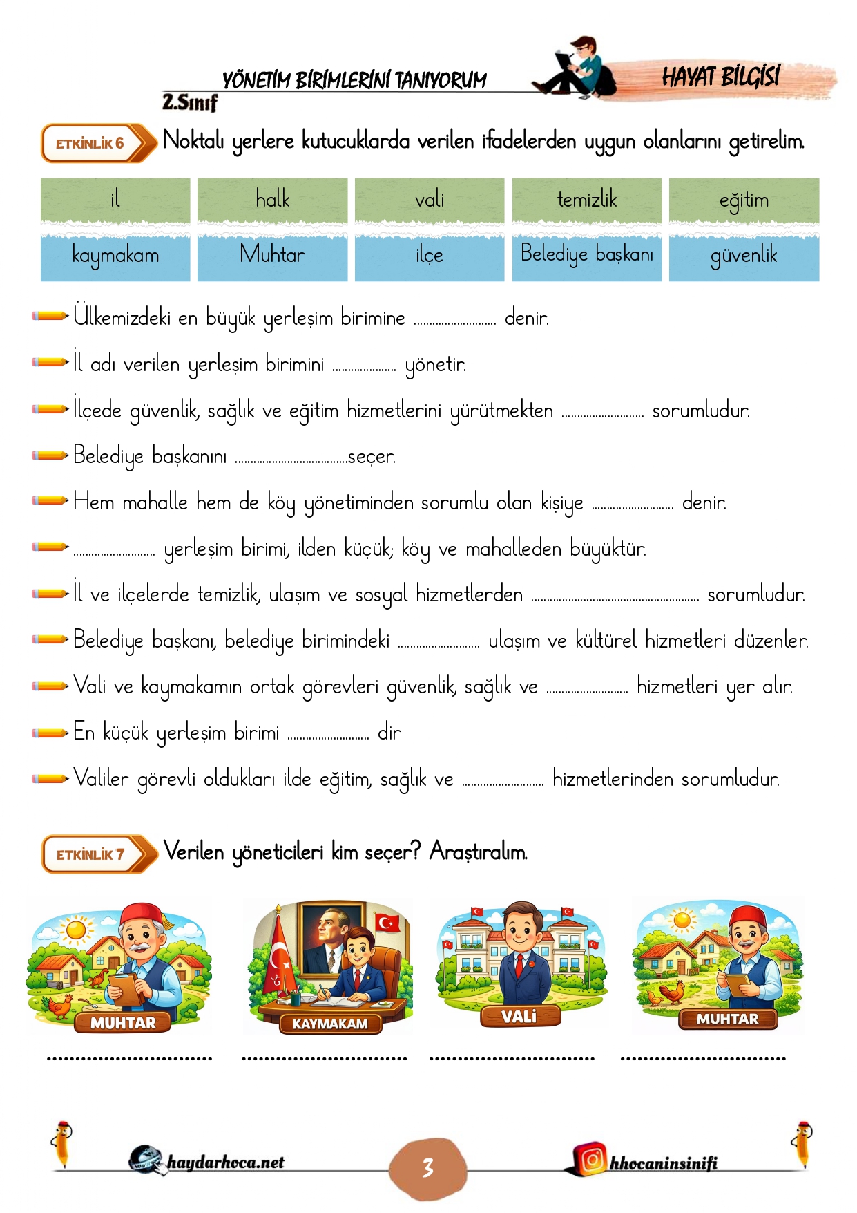 2. Sınıf Hayat Bilgisi Yönetim Birimlerini Tanıyorum Konu Etkinlikleri 7 Şubat 20268 Şubat 2026Şurada Paylaşıldı: 2. Sınıf, 4) Yaşadığım yer ve Ülkem, Hayat Bilgisi2. Sınıf 20. Hafta Hayat Bilgisi Yönetim birimlerini Tanıyorum defter notuİndir2. Sınıf 20. Hafta Hayat Bilgisi Yönetim birimlerini Tanıyorum Konu Etkinlikleriİndir