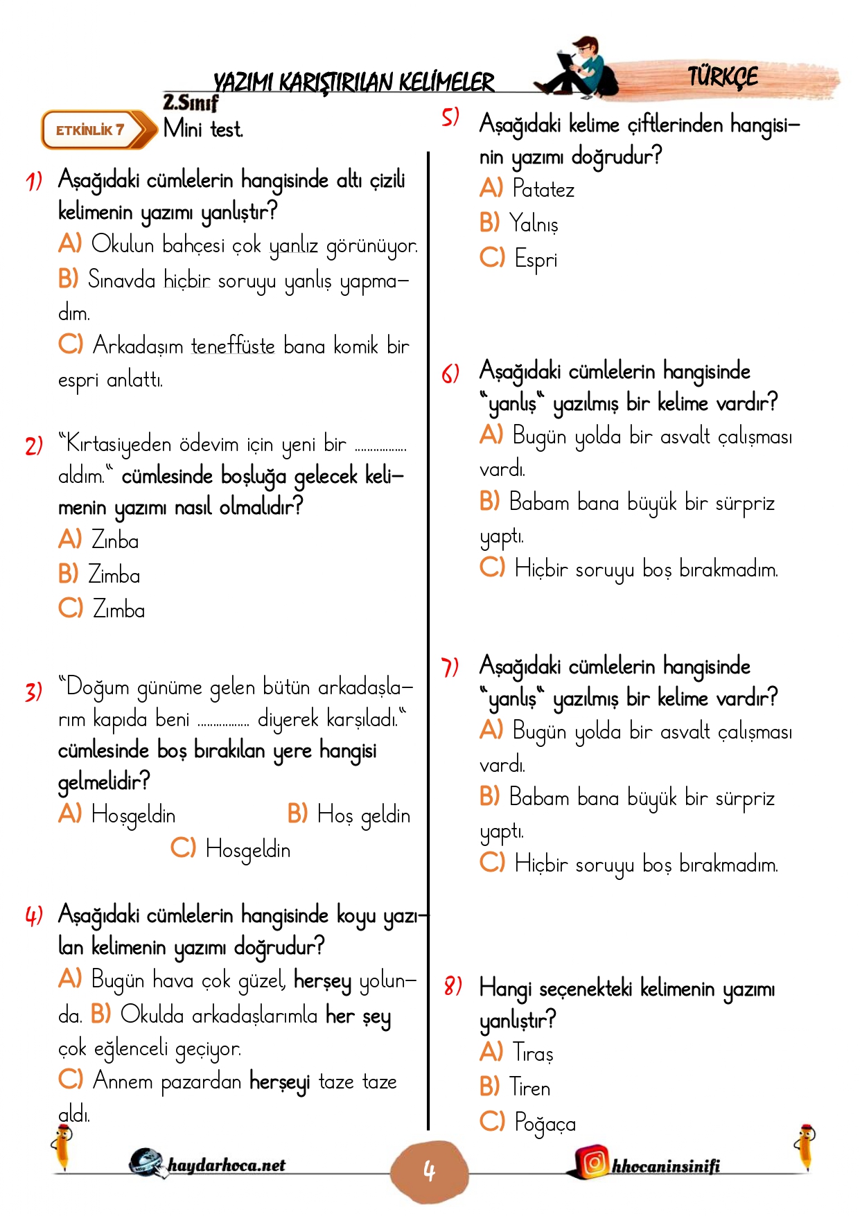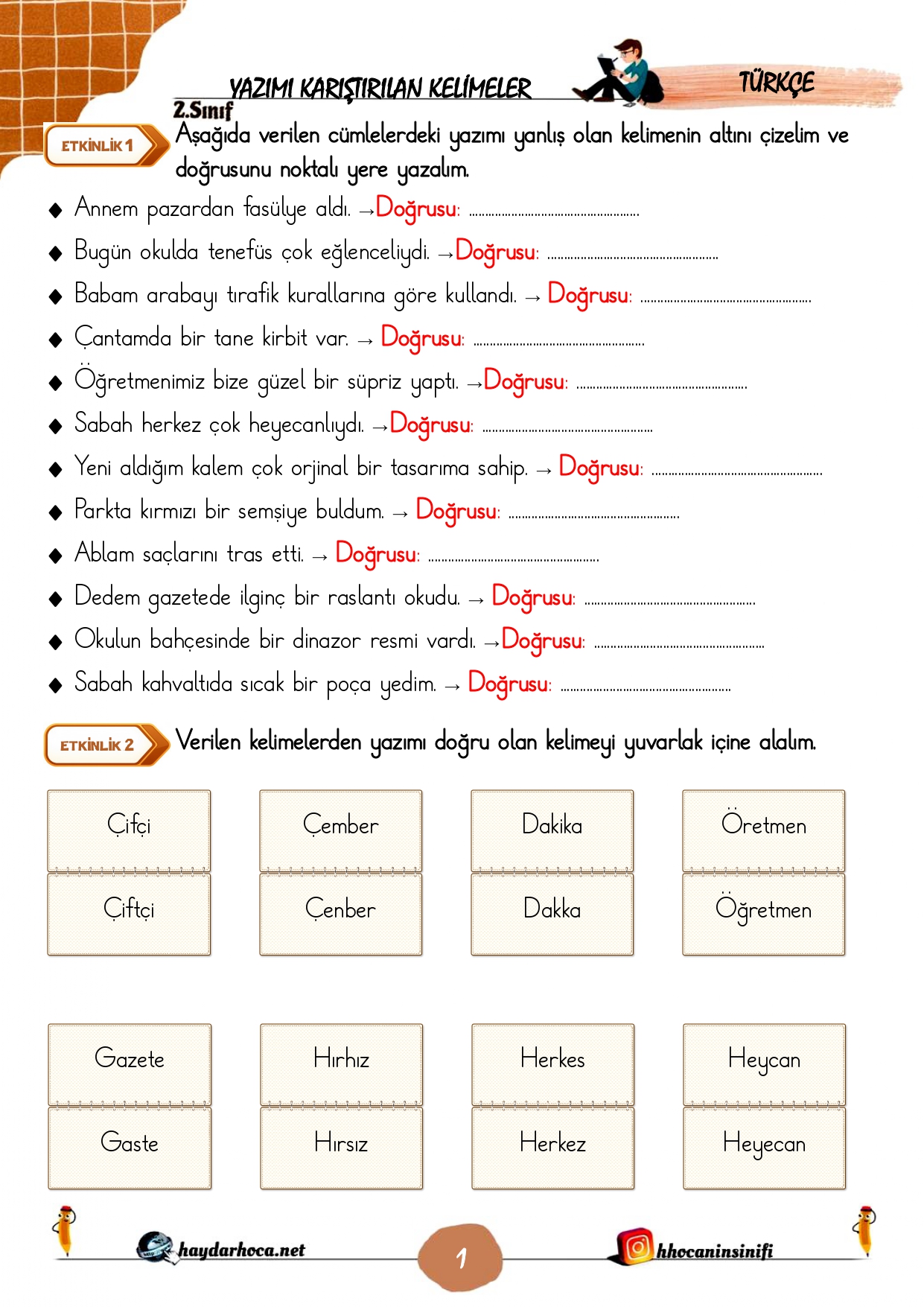 2. Sınıf Türkçe Yazımı Karıştırılan Kelimeler 21 Şubat 202621 Şubat 2026Şurada Paylaşıldı: 10) Yazımı Karıştırılan Kelimeler, 2. Sınıf, Türkçe2. Sınıf Türkçe Yazımı Karıştırılan Kelimeler Defter Notuİndir2. Sınıf Yazımı Karıştırılan kelimeler Konu Etkinlikleri 1İndir2. Sınıf Türkçe Yazımı Karıştırılan Kelimeler Konu Etkinlikleri 2İndir